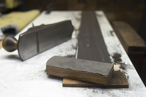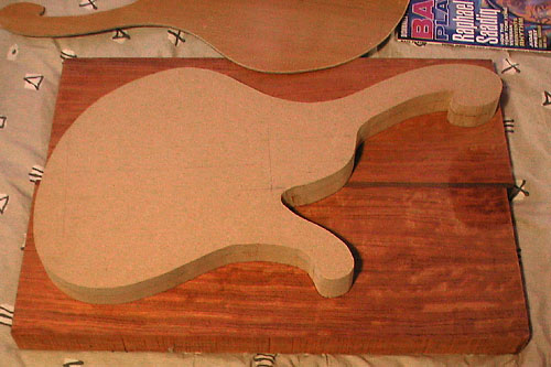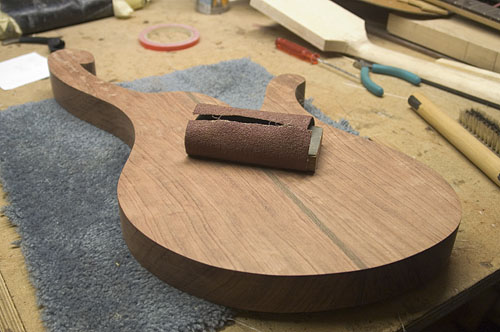 Fixing up the bubinga body after routing the outer shape.